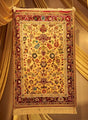 Majestic maroon faux fur wall-hanging rug, handcrafted with intricate vintage inspired embroidery. Heavily embellished with dazzling Swarovski crystals, multicolored rhinestones, lustrous pearls & mirror work, this piece exudes timeless opulence & artisanal mastery.