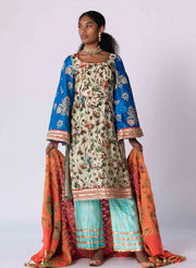 Silver and Copper Beaded Blouse, Palazzo & Shawl