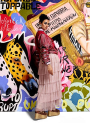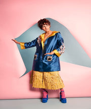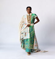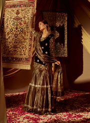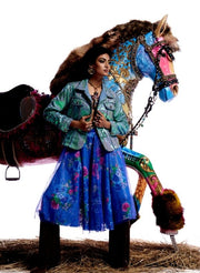 Blue Banarasi Kurta Set With Mirror & Gota Work