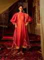 Red Shaded Chanderi Silk Bangled Kurta Set