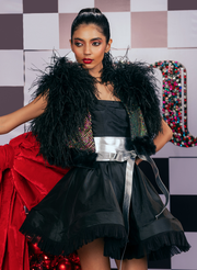 MULTI-COLORED RHINESTONE WAISTCOAT WITH BLACK OSTRICH FEATHERS