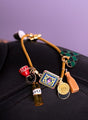 WHY MM LOVES IT:A pull up cord bracelet carrying opulent enamel brooches & assorted gold charms to complete your stack